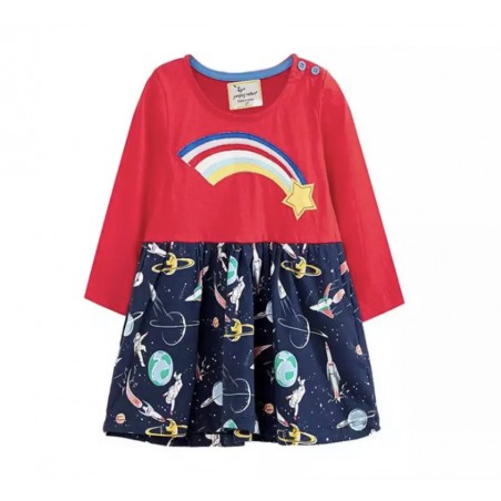 Vestido rojo para niñas con una estrella fugaz y unos planetas divinos.